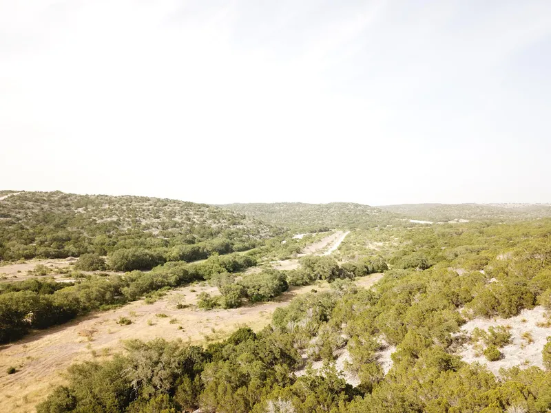Level bottoms with abundant topsoil, heavy cover, HUGE live oaks to sloping/ steep hills with level hilltops offering up 15 mile views