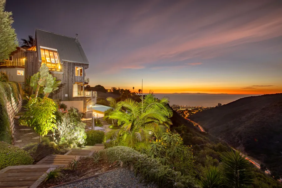 The Barn House, created by Fred Briggs, one of the worlds top residential architects, is a masterpiece that sits high above Laguna Beach. This location offers one of the most dramatic views in Laguna Beach. The original Bauhaus-style with oak barn exterior has been perfectly refined by employing three materials for renovation: steel, wood and glass allowing this home to blend into the canyon beyond. Expansive walls of windows welcome light and views inside, while the two-story fireplace forms a warm heart for the home, ensuring comfort from inside to out. Enchanting from first sight with the soaring ceilings and exposed beams overhead, and hardwood floors underfoot. The four-sided-infinityedge pool is the centerpiece of the outdoor entertainment areas. Enjoy the outdoors in private luxury on any of the four balconies, from the infinity pool with oceanfront views, along endless walking paths, or within the private orchard. The Boffi kitchen and living areas make entertaining indoors as easy as out.