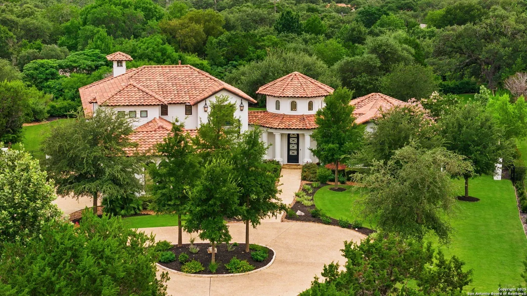 Welcome to luxury living in the prestigious gated community of The Huntington at Shavano Park. This exceptional estate, built by multi award-winning Burdick Homes, sits on a private, manicured 1-acre greenbelt lot designed for elegant entertaining and everyday resort-style living. The open-concept layout is anchored by a chef's kitchen featuring Taj Mahal quartzite countertops, professional-grade stainless steel appliances, custom cabinet paneled refrigerator, double ovens, pot filler, gas cooking, farm sink, custom soft close Amaya cabinetry, and an oversized walk-in pantry-all overlooking a spacious family room with soaring ceilings and wood beam accents. Step outside to a true backyard oasis with a covered patio, full summer kitchen, outdoor fireplace, and a luxurious Keith Zars pool and spa surrounded by pristine landscaping and breathtaking greenbelt views. The elegant primary suite offers a spa-like bath with an oversized walk-in shower, soaking tub, dual vanities, and custom-designed closet. Flooring includes custom rich hickory and French Oak wide plank hardwood flooring, casement windows with custom shutters throughout, and a private safe room. A large secondary suite with ensuite bath and high ceilings on the main level provides privacy for guests or multigenerational living. Additional highlights include a dedicated pilates studio and gym with serene backyard views, a secondary living area with built-in bar, Perlick wine refrigerator, an abundance of storage, and custom sliding glass doors lead to the pool/spa area. All of this in an unbeatable location just minutes from The Rim, the Rock at La Cantera, Fiesta Texas, and UTSA. KEY FEATURES: 5 Bedrooms, 4 1/2 bathrooms, 6,595 square feet, 3-car garage, 1.14 acre Private Greenbelt Lot, Keith Zars Pool & Spa, Outdoor Fireplace & Summer Kitchen, Home Gym/Pilates Studio.