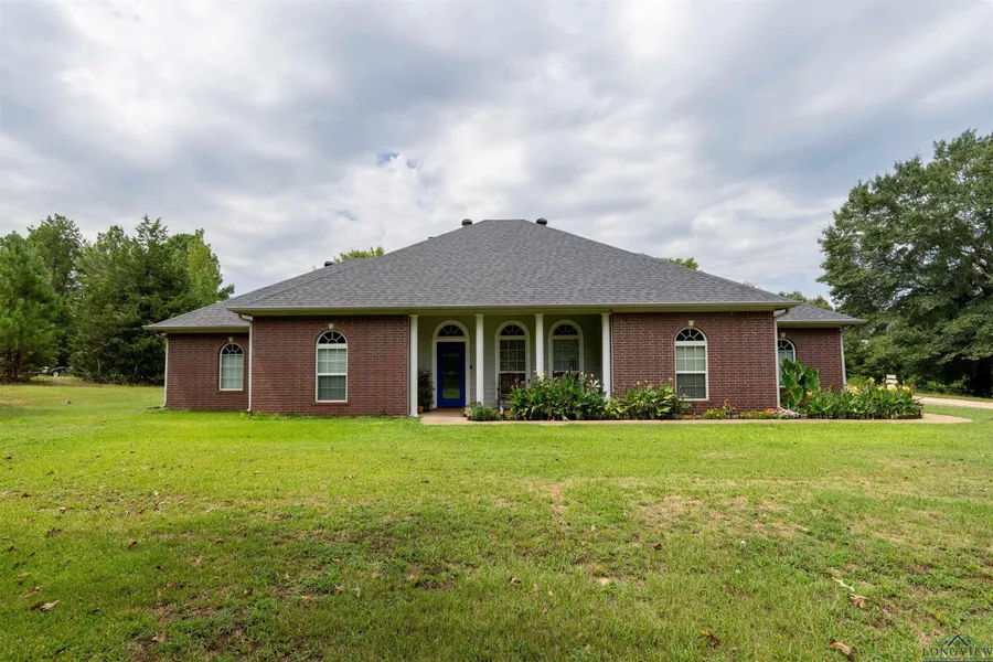 Welcome to this beautifully updated 4-bedroom, 2-bathroom home offering an impressive 2,500 square feet of well-designed living space. Nestled on 2 acres, this property is located just about a mile off Hwy 271, south of Gladewater, with easy access to Longview, Tyler, and surrounding East Texas communities. From the moment you step inside, you’ll notice the attention to detail and pride of ownership throughout. The open-concept layout is perfect for both everyday living and effortless entertaining. Soaring high ceilings enhance the sense of space and light, while rich wood and sleek tile flooring provide warmth, style, and durability. The heart of the home is the spacious kitchen, featuring beautiful granite countertops, abundant cabinetry, and plenty of prep space, ideal for cooking, hosting, and creating memories with family and friends. All four bedrooms are generously sized and filled with natural light. The primary suite serves as a peaceful retreat, complete with a well-appointed en-suite bathroom designed for comfort and relaxation. This home also offers a home office space off of the master bedroom. Recent upgrades bring true peace of mind, including a brand-new roof, high-efficiency A/C system, and new aerobic septic system; three major improvements have already been completed for you. Step outside to enjoy the large backyard, offering endless possibilities, whether you're gardening, adding a pool, or simply enjoying the quiet of your own private outdoor space. Whether you're searching for your forever home or a smart investment opportunity, this move-in ready property is a rare find with so much to offer. Don’t miss your chance to schedule your private showing today and come experience all that this exceptional home has to offer.