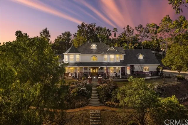 Secluded Corona Estate Home on spacious 4.36 Acres of Land! This Vastly Upgraded Estate is a Steal featuring 4 spacious bedrooms, immensely upgraded 3 bathrooms with walk in showers and claw bathtubs, 3,057 square feet of living space, HUGE pull through shop with electricity and large barn doors and 1/2 bathroom, plus an additional 3 car attached garage and additional parking, shop provides 2,000 on floor and loft with 350 feet of room, room for all your needs, beautiful wrap around veranda, fully gated lot with custom wrought iron automatic gate, beautiful water wise landscaping, custom wood dual staircase, upgraded wood flooring, vaulted ceilings, upgraded baseboards throughout, beautiful Georgian windows lead to stunning hill views, ceiling fans throughout, kitchen features oak custom cabinetry, granite countertops, stone backsplash, chef quality appliances, deep country sink, upgraded French doors open spacious kitchen to custom outdoor BBQ area and living room to outdoor seating, vaulted gas fireplace, natural lighting throughout open floor plan, second floor viewing of downstairs living room, downstairs master bedroom and full bathroom, spacious walk in closet with custom built-ins, huge downstairs laundry room with sink and lots of cabinet storage, large loft upstairs with balcony, serine pond with waterfall and custom bridge, lush trees provide natural shade, LOW tax rate, NO hoa, located near award winning schools and shopping! Hurry this will not last!