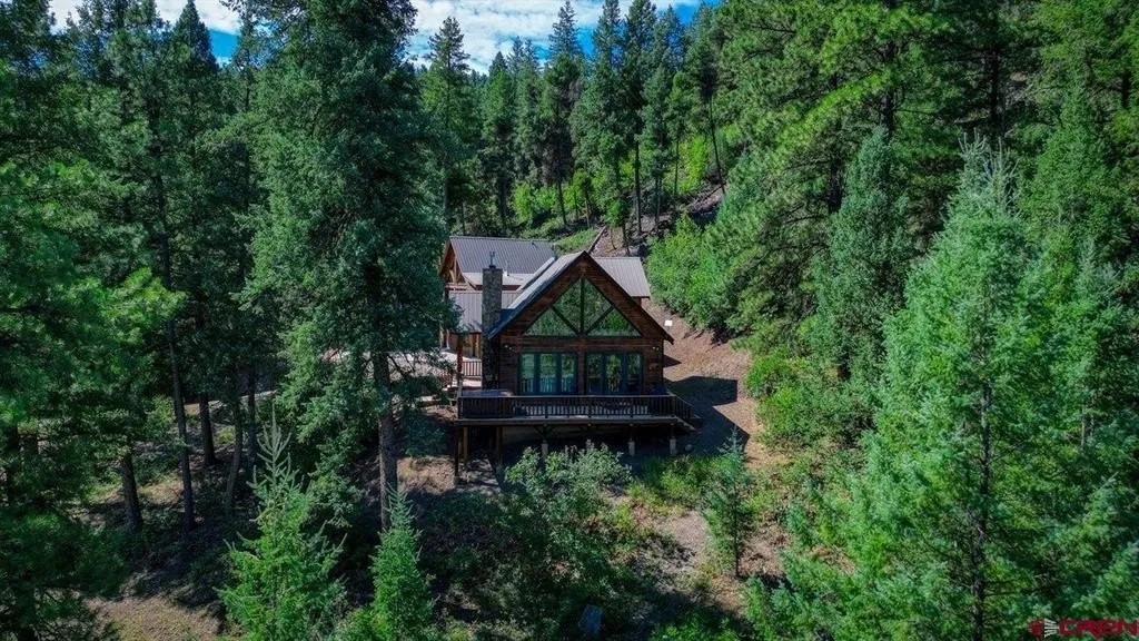 Martha Murphy, Best of Pagosa Springs, C: 970-903-4050, , Your Turnkey Mountain Getaway Awaits! This fully furnished retreat on 5 private acres in scenic Loma Linda offers the perfect blend of rustic charm, modern comfort, and true mountain living—with private National Forest access right inside the subdivision. The main home features 3 bedrooms, 2 baths, and stunning floor-to-ceiling mountain views. Enjoy an open lodge-style layout with a moss rock gas fireplace, bright living and dining areas, and a wraparound deck perfect for relaxing or entertaining. Two bedrooms, a full bath, and laundry sit on the main level, with a third bedroom, second bath, and loft/office upstairs. A separate guest cabin sits above a heated oversized 2-car garage—ideal for guests, rentals, or a private compound. It includes a full kitchen, vaulted ceilings, cozy living area with gas stove, loft, large bedroom, bath, and its own washer/dryer. Both homes have air conditioning for year-round comfort. Surrounded by soaring pines yet only minutes to town, this peaceful hideaway is move-in ready, fully furnished, and truly turnkey. Perfect as a mountain getaway, year-round residence or family retreat.