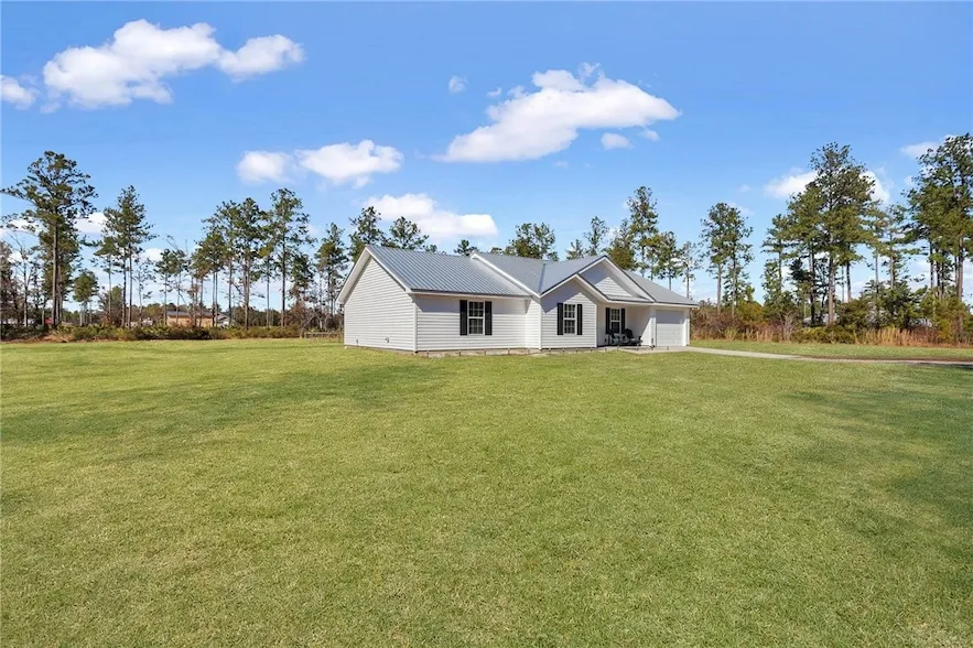 Discover the perfect balance of modern comfort and outdoor space in this 3-bedroom, 2-bath home, built in 2021. Situated in the middle of 2.73 acres, this 1,359 sq. ft. home offers privacy with a tree-lined perimeter while providing open space around the house. Conveniently located near Brunswick amenities but within the Wayne County School district, this property sits on a paved road in a community with no HOA. Inside, the open floor plan creates a bright and inviting atmosphere. The spacious kitchen boasts quartz countertops, a large island, and ample cabinet space. LVP flooring runs throughout the main areas, while the bedrooms feature cozy carpeting and generous closets. A metal roof adds durability, and the covered back porch with an additional sheltered area provides a great spot for relaxing and enjoying the outdoors. If you're looking for a private retreat with modern conveniences, this home is a must-see. Schedule your showing today!