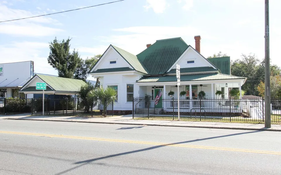 Shepherd House circa 1908-1909. "Exceptional” architecture significance rating, builder was a true craftsman. Home features 3 bed/1 full-bath/ 1 large half- bath, dining, living, kitchen & laundry room. Front porch wraps around home. Directly across the street from the City Park. New Front Porch! Rear porch w/original lattice work. Original front door is carved wood w/transom & sidelights. Custom-built ADA compliant handicap ramp. Retains over 90% of its original features. Original interior doors, wainscoting, windows & 2 stained glass windows. One-story home has 12-foot ceilings throughout. 2 new air conditioning units, as well as all new ducting. Electric was completely replaced throughout in 2020, as well as the plumbing. One bathroom is ADA compliant. Freshly painted, new concrete driveway, new fencing & gates all in 2022. Includes an original, detached carport. Access to fiber optic cable for high speed internet. Walking distance to city & county services & shopping. Residential use but in a commercial district so it could be changed for commercial use.