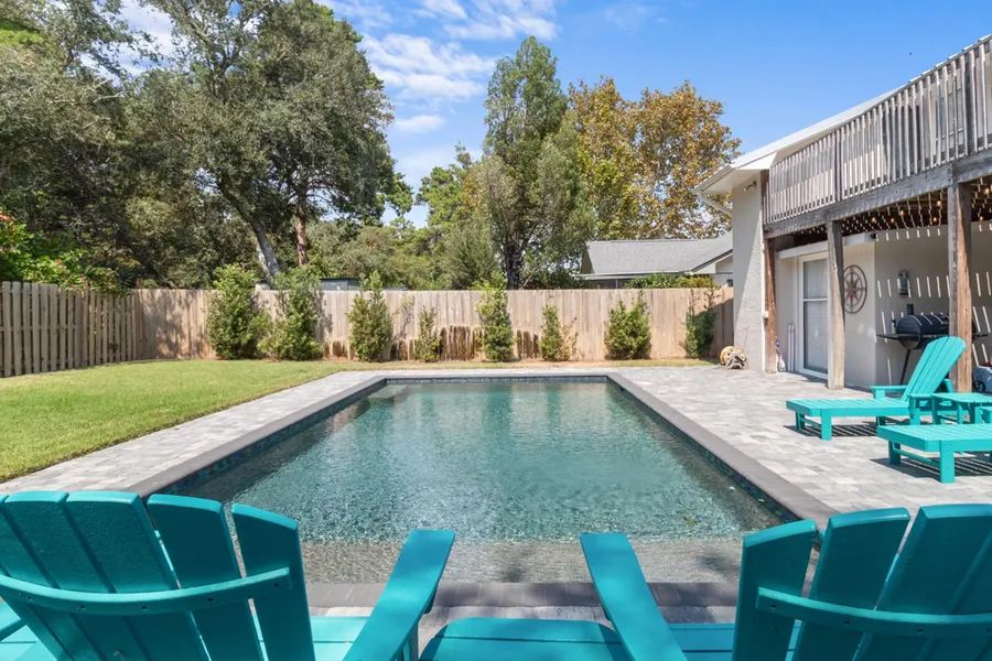 This spacious coastal retreat on the West End of Panama City Beach offers the perfect blend of comfort, style, and convenience. Just a short walk or golf cart ride to the beach, this two-story home designed for easy beachside living. Inside you will discover new floors and a stylish kitchen featuring stainless steel appliances and granite countertops. The interior is beautifully designed with calming neutral tones that create a bright, welcoming feel throughout. Out back, a private pool invites you to unwind or entertain friends after a day at the beach. This home's meticulous upkeep make this property truly move-in ready. A durable metal roof, installed in 2019, ensures lasting peace of mind. Call your agent now to schedule your appointment. Information contained within this listing such as lot dimensions, is deemed to be accurate but is not guaranteed. Buyer to verify.