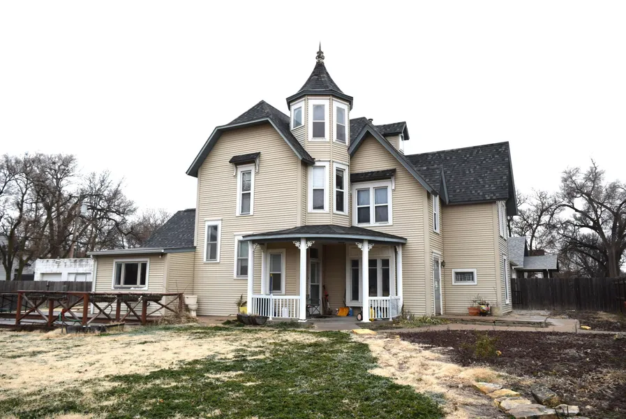 Unique, with lots of character in this Victorian style home built in 1898. Well maintained. Kitchen remodeled, awesome hard wood floors and room for everyone. Large lot, water well for outside watering, strorage shed,privacy fence and two car detached garage. Virtually maintenance free with the steel siding. Must see to appreicate this one of kind home. Call Errol to tour 785~623~1634..