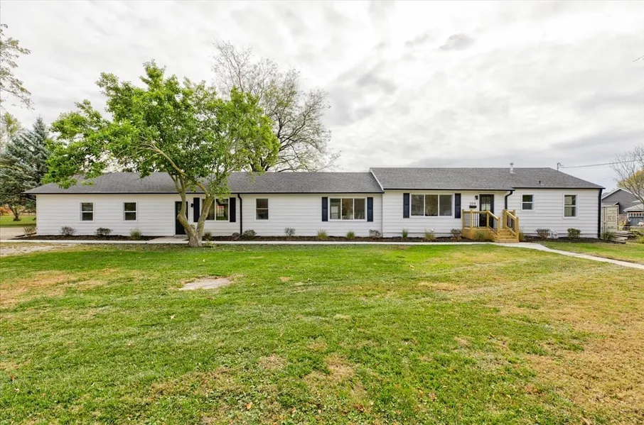 Discover this beautifully renovated ranch offering over 2,300 sq ft of finished living space - perfectly combining modern design with small-town charm. Step inside to a bright open floor plan featuring new flooring throughout, recessed lighting, and spacious gathering areas ideal for entertaining. The inviting living room centers around a stunning floor-to-ceiling stone fireplace, while the dining area flows seamlessly into a beautifully updated kitchen with wood cabinetry, quartz countertops, tile backsplash, and stainless-steel appliances. This expansive home includes multiple living spaces, 4 bedrooms, and refreshed bathrooms with contemporary finishes. The sunroom provides the perfect flex space for a home office, playroom, or cozy sitting area with access to the fenced backyard. Enjoy a private outdoor retreat on the patio shaded by mature trees. The property also includes a 2-car attached garage plus an additional 1-car detached garage for extra parking or workshop space. The lower level is ready for living with egress window and sump pump. All situated on just blocks from schools, parks, bike trails and downtown Madrid amenities. Move-in ready and thoughtfully updated inside and out - this home is truly a must-see!