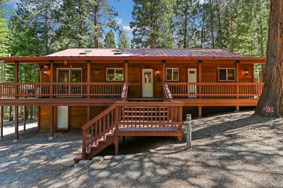Welcome to your dream retreat in the woods! Nestled amidst nature's serenity, this captivating cabin is a hidden gem awaiting its lucky new owner. Step inside, and you'll be greeted by a warm and inviting interior that exudes coziness and comfort. The main living area features a rustic stone fireplace, perfect for those chilly evenings when you want to curl up with a good book or gather with loved ones for intimate conversations. This home has two bedrooms, each offering a peaceful haven for relaxation and rest. However, there's more! The third room presents a versatile space that can be used as a home office, a guest bedroom, or a hobby room. Venturing downstairs, the basement holds incredible potential. With its generous size and versatile layout, you'll have ample space to transform it. Outside, a charming deck provides the perfect spot to soak up the natural beauty that surrounds you. Don't miss out on this exceptional opportunity to own a cabin that embodies the perfect blend of rustic charm, beautiful landscaping, and limitless potential.