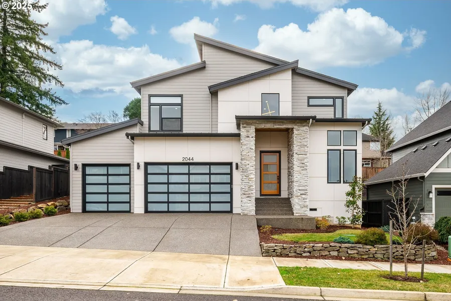 Beautiful modern custom home built by local boutique builder in Summit Terrace on Prune Hill. The exterior is just as stunning as the interior. Open concept style that is light and bright with 10' foot ceilings on main and 8' doors throughout. Dream kitchen with Rift Oak Cabinets and shelving, spacious waterfall quartz island, walk-in pantry with butcher block counter, high end appliances, and oak engineered hardwood flooring all throughout main floor. This home has four bedrooms on upper floor, den/office on main including closet and a full bathroom on main floor. The spacious primary bedroom includes a spa like bathroom with floor to ceiling tile, rain shower head and freestanding tub, a large walk in closet with ample shelving. Plush carpet with memory foam pad underneath throughout second floor. Two of the upstairs bedrooms have walk-in closets, generous storage space. HOA covers front lawn maintenance; low maintenance backyard has a partially covered deck that can be enjoyed year round. Home backs to a parklike trail. No details were spared from all of the custom cabinetry, tile choices, lighting, fixtures and handles. Located in the highly desirable, top rated Camas Schools. Lovely neighborhood with walking trails, minutes to Lacamas Lake , and prime location to freeway, PDX airport, Vancouver waterfront. You will love to call this place home!