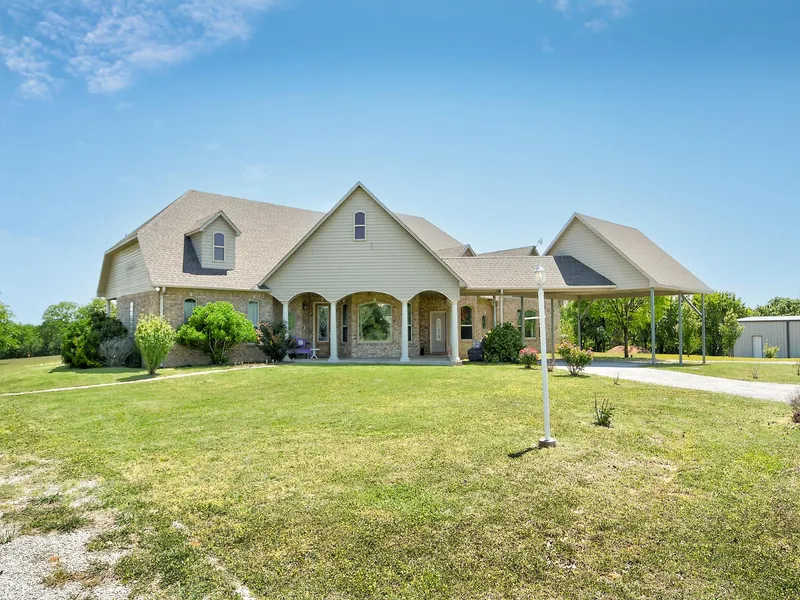 Introducing your dream retreat! This stunning custom home offers 30' x 40' shop with a stocked pond nestled on a sprawling 9.58-acre parcel in a picturesque country setting yet close to town. This home offers two living areas, a bonus area, a formal dining room, four bedrooms, two full bathrooms, a half bathroom, and an additional bathroom with a shower with access to the outdoor living area. From the expansive back porch, you don't see any neighbors but can enjoy wildlife at its finest. From the minute you walk in the front door, you will appreciate the vaulted ceilings, crown molding, Corian countertops, and gorgeous butcher block island with a breakfast nook and a pantry. The large breakfast bar allows for seating large groups and is a perfect space for entertaining. The main bedroom is downstairs with back patio access, a cedar closet, and two additional closets. The main bathroom has granite countertops, double sinks, a jetted soaker tub, and a separate shower with a private toilet area. Downstairs are two spacious bedrooms with a full bathroom with a jack-and-jill layout. The main gathering place in this home is the mast second living room which will seat large groups easily.For those who love to tinker, a 30 x 40 shop building provides ample space for hobbies, storage, or even a home workshop. It's the perfect complement to this already incredible package. What sets this property apart is the potential for expansion. You could build a second home on this beautiful acreage with the additional water and electric meter provided.