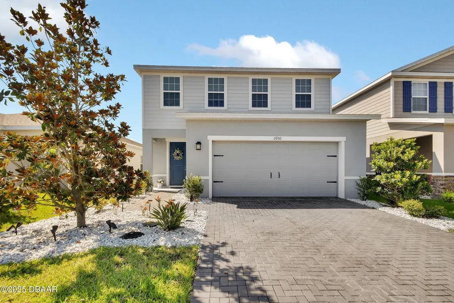 Welcome to your dream home in the Vibrant Lakewood Park Community Step into elegance with this stunning Windemere model home, built in 2022 by Ryan Homes. Located in the sought-after Lakewood Park neighborhood, this residence offers the perfect blend of modern design and natural beauty. As you enter the foyer, you're greeted by a striking staircase featuring a wrought iron and wood banister that leads gracefully to the second floor. Continue into the heart of the home where an open-concept layout seamlessly connects the living area, kitchen, eat-in space, and a versatile formal dining/flex room. The kitchen is a chef's delight, showcasing stainless steel appliances, Quartz countertops, pendant lighting, and a spacious island with bar seating-ideal for entertaining. The adjacent living area is bathed in natural light and offers serene views of the screened back porch, pond, and conservation area. Need extra space? The main floor includes a dedicated room that can be customized as a formal dining room, reading nook, home office, or anything your lifestyle requires. Upstairs, you'll find a generous loft, four bedrooms, and two full bathrooms. The primary suite overlooks the tranquil pond and features a walk-in closet and a luxurious en suite bath with a garden soaking tub, dual vanities, walk-in shower, linen closet, and an additional walk-in closet. The three secondary bedrooms are spacious and include built-in closets. Additional highlights include: HVAC system equipped with UV lights for enhanced air quality, screened back porch with peaceful pond and conservation views, flexible living spaces to suit your needs, fenced backyard, additional storage under stairwell, front landscaping with white marble chip rock, reclaimed water for irragation. Included in the association is a pool and playground. Easy access to I-4, Orlando and Daytona Beach within a 30 minute drive. Historical downtown Deland, Stetson University, Athens Theater, local eateries, and much more are nearby. This home is move-in ready and waiting for you to make it your own