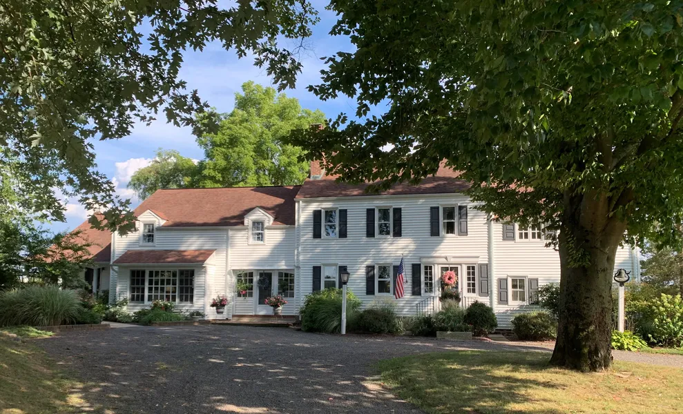 STILL MEADOW FARM, CIRCA 1730, a magical site, nestled next to preserved land w/distant vistas, is truly a slice of Americana. Magnificently restored historic farmhouse with original wide pine floors, separate in-law suite w/patio and porch, livestock barn, income-producing, two-bedroom carriage house on almost seven acres of working farmland. The residence offers formal public entertaining space spilling out to enclosed screened porch, brick patio with jacuzzi, garden, fields and stream. The main floor boasts a formal living room w/period, walk-in FP, formal dining room w/romantic FP, formal parlor/receiving room, library, new renovated kitchen, breakfast room and guest suite with separate entrance. The upper floor includes a large, primary bedroom w/dressing area, full bath. Five other sleeping/guest rooms (one a full suite with sitting room) and two newer full baths, painstakingly designed with period fixtures. A full, floored, walk-up attic is accessed by wide permanent staircase. The basement has a brick floor and original walk-in fireplace. The property has served as a cattle farm, sheep farm, Christmas tree farm (trees ready for 2022 season) and was previously owned, enlarged and enhanced by a prominent family post WWII. The second residence is legally rented or can be enjoyed for multi-gen purposed.