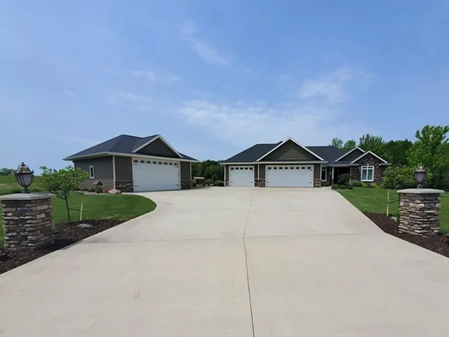 In search of Excellence? Look no further! Your expectations will be met in this like new beautifully appointed 3 BD, 3 BA ranch home situated on a professionally landscaped 1.2 acre lot. A welcoming entry leads you to the heart of the home. Spacious living room with vaulted ceiling and gleaming wood floors is open to an inviting sun room & a stone front gas fireplace. Efficient style plus inviting warmth in the kitchen finished with custom maple and cherry cabinetry, granite counters with a huge granite center island, walk in pantry and all stainless appliances. This home is designed for entertaining with the open concept floor and amazing outdoor living! The dinette leads to the spacious covered porch with wood cathedral ceiling and stamped concrete. Step down to the pergola area to soak up all the sun! Plenty of the natural lighting throughout the home. Quiet, elegant master suite features a tiled bath, walk in shower, dressing room closet and a dual vanity with stunning two tone cabinets. Main floor also features an additional bedroom, bath and convenient main floor laundry just off the barrier free entry to the attached insulated and heated 3 car garage. Finished lower level features cozy family room with wet bar, spacious bedroom with walk-in closet, a bonus office or exercise room, and full bath. Additional craft room plus storage in unfinished area of full basement. Separate detached 26x26 2-car insulated garage is the perfect workshop. Located on a quiet and paved non-through street in a rural subdivision. Pride of ownership offers you a tastefully decorated, move-in ready home. Let us open the door to your new home! Call today for your personal showing!