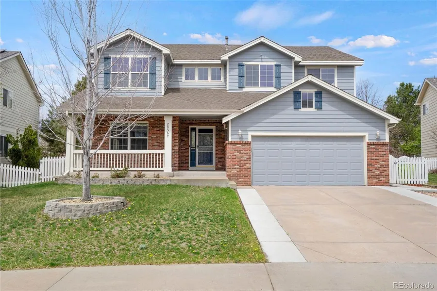 Welcome to 20567 E Weaver Dr-an updated 4-bed, 4-bath home offering 3,821sqft in the well-established Greenfield neighborhood. From the spa-like primary suite to the backyard retreat, this home is packed with comfort, style, and standout features. Step inside to vaulted ceilings and hardwood floors that flow throughout the main level. At the entrance, you'll find a bright formal living and dining space-with room for cozy seating, a designated area for hosting formal dinners, and built-in speakers with surround sound for an elevated entertaining experience. Toward the back of the home, a vaulted family room is filled with natural light and features a gas fireplace, with a private home office tucked behind. The kitchen includes a gas range, ample cabinetry, a prep island, a built-in workstation, and a dine-in area-perfect for casual meals, or morning coffee. Just off the dining area, step outside to a backyard designed for relaxation, with a large patio, a hot tub under the pergola, and a firepit nestled into the yard. Upstairs, the vaulted primary suite offers a renovated en-suite bath with a jetted tub, multi-head shower, dual floating vanities, and a walk-in closet. Three additional bedrooms and a full bathroom complete the upper level, along with an open hallway overlooking the family room below. In the finished basement, enjoy movie nights in the soundproof theater room-complete with a projector, screen, and surround sound wiring. A spacious bonus room provides flexibility for a guest suite, gym, or game room, while a large utility closet offers plenty of additional storage. A nearby bathroom with walk-in shower completes the lower level. Additional highlights include fresh interior paint, a covered front porch, a large laundry room with cabinet storage, and a finished 2-car garage with epoxy flooring. Enjoy access to Greenfield's clubhouse, pool, tennis courts, scenic trails, and top-rated Cherry Creek schools-all just minutes from Southlands and E-470.