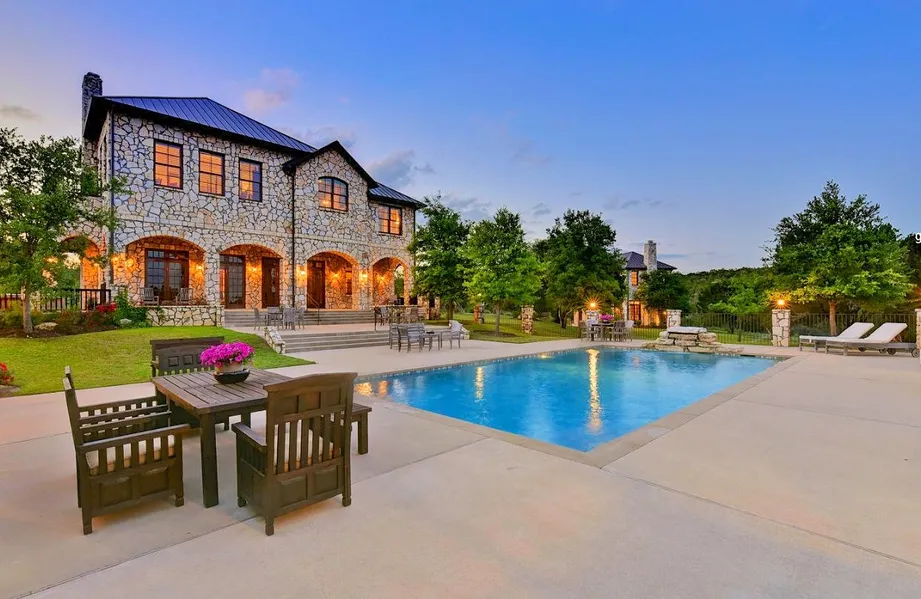 This luxury estate is located in the gated waterfront community of Angel Bay. It is located on 25 acres down a very scenic Hill Country private drive, with additional adjacent acres also available. The estate is meticulously maintained and landscaped, and includes a main home, guest home, and a garage with private apartment totaling 6 bedrooms and 10 baths, and 6,581 sq ft. The Angel Bay community also boasts its own private waterfront park, pavilion, and marina. 4 boat slips convey with sale of the estate, with great Lake Travis water access. The property is in district for award-winning Lake Travis schools.