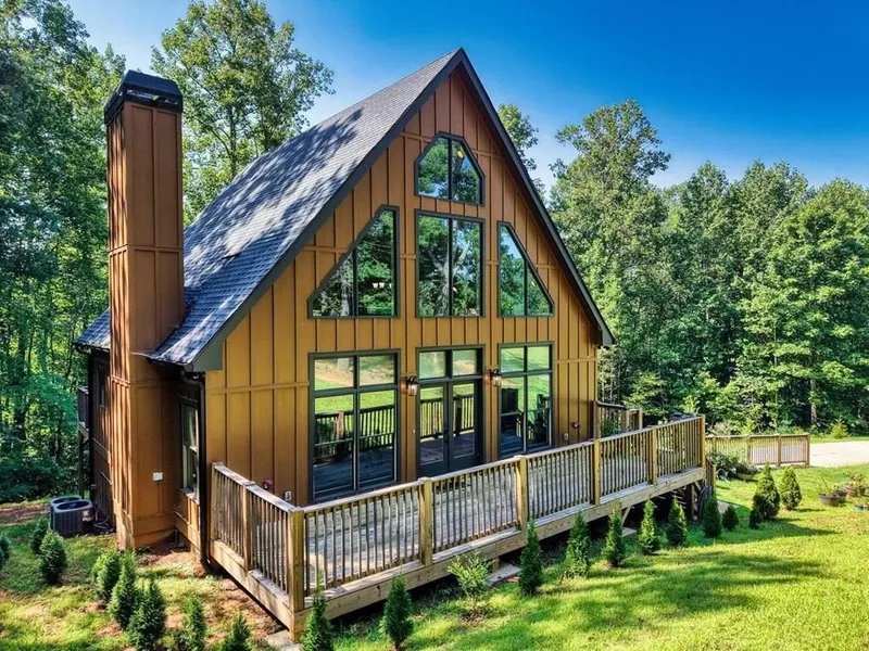 Modern mountain living meets rustic charm in this striking chalet-style home in the desired Choestoe Valley area! Featuring 2 bedrooms, 2 1/2 bath, and a full unfinished basement alreadym framed and ready for you to make it your own. The great room boasts soaring vaulted ceilings, a dramatic wall of windows, and a stacked stone fireplace. The open kitchen offers white shaker cabinetry, corian quartz countertops, farmhouse sink, stainless appliances, and a large island perfect for gatherings, Laundry room with sink and walk in pantry and loads of cabinet space. Master on main along with half bath for company. Upstairs you will find one bedroom/one full bath and a versatile loft overlooking the great room—ideal for an office, den, or extra guest space. Multiple decks provide peaceful wooded privacy and mountain views, while the one-car garage offers secure parking plus additional space for a mower or utility vehicle. With hiking trails, waterfalls, and lakes just around the corner, and downtown shops, dining, and conveniences only minutes away, this home is the perfect blend of comfort, convenience, and mountain adventure. Just minutes from downtown Blairsville, Vogel State Park, and Brasstown Bald—the highest peak in Georgia with breathtaking 360 views. Furnishings stay, Outdoor Furniture stays. Brand New Chest Freezer in Garage stays.