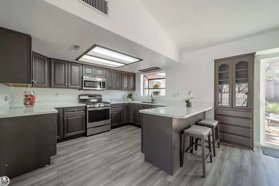 Enjoy this beautiful house atop a knoll and in close proximity to the private Phoenix Lake. Upon entering the home, you will be struck by the openness of the layout enhanced by the open beam ceiling. A modern aesthetic is brought to life with new paint, new laminate flooring & carpet throughout and a masterfully updated and remodeled kitchen. The kitchen has stainless steel appliances that include a gas stove, a garden window and a breakfast bar. The living room feels light and roomy and has a wood burning stove, ceiling fan and access to the backyard. The built-in reading nook is a cozy addition to the living space. This 1472 SF home has 2 bedrooms & 2 bathrooms, and there is an extra space that can be used as a sleeping area or office. The HVAC system was replaced in 2019 & can be controlled from your smart phone. Connected to the attached garage is a 235 square foot finished bonus room with tile flooring and propane hook up for a heat stove. This makes for an ideal office or exercise room. On the front deck, you’ll find solid Trex decking. The large backyard is fenced and will give you plenty of space for entertaining, outdoor games, a vegetable garden or a place just to relax. The HOA includes access to Phoenix Lake for boating and fishing. Located a short drive from many outdoor adventures including hiking trails in Twain Harte, snow play at Dodge Ridge Ski Resort, and swimming at Pinecrest Lake.