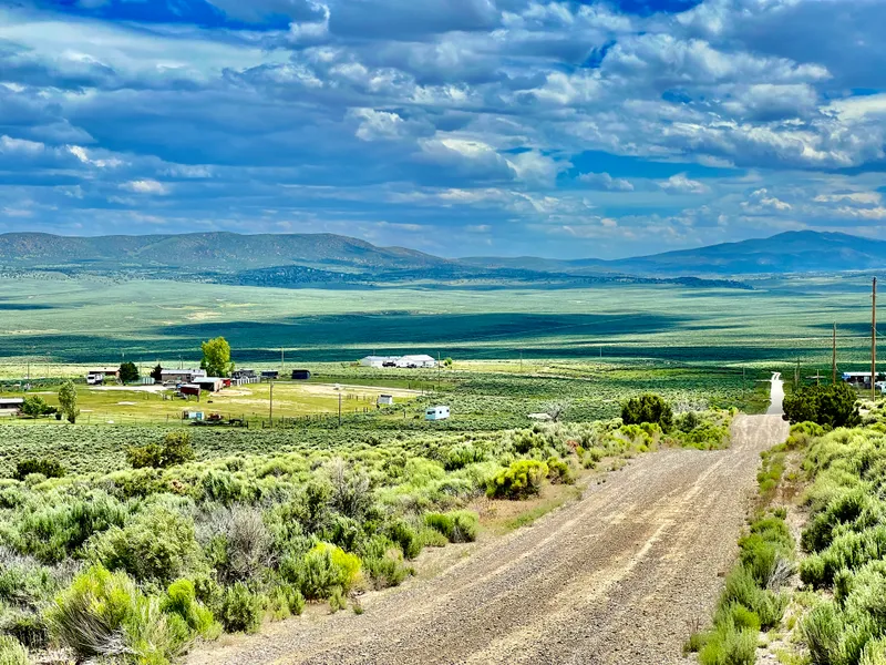 Looking east and southeast, youll see the Ruby Mountains stretching across the horizon, still dusted with snow even in warmer months. The view is wide and unblocked, with no buildings or power poles in the way.