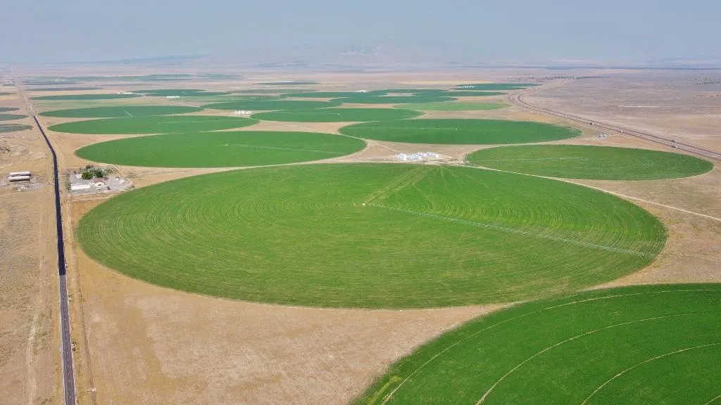 Well Water Farm: 39 pivots irrigating 4,593 acres from deep wells (shaded green, above)