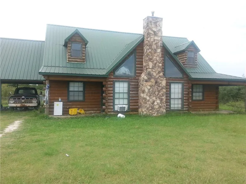 Outdoor Retreat, Vacation Home, or just good country living. Hunt and fish on your own property. Enjoy this Satterwhite Log Home with approximately a 2 acre pond located on 22.627 acres. Partial pasture and wooded with creek on back side of property. Property is approximately 744 feet wide on road side. Wrap around porches with stone fireplace and vaulted ceiling. Property has a wildlife exemption for property taxes. 20 x 30 Side attached carport.