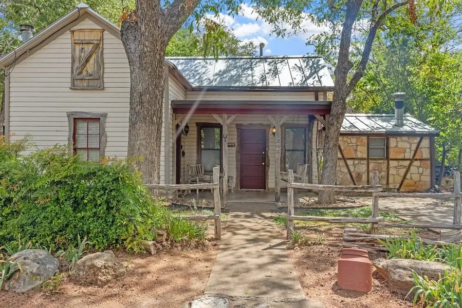 BOWIE COTTAGE – A Unique Opportunity Awaits You: Welcome to the Bowie Cottage, a Successful Vacation Rental, near the heart of downtown Fredericksburg. This home is turn key with all furnishings and future bookings! Charming renovations give this 100 year old historic home a cozy feel. This once full time residence is now masterfully separated into two living spaces. Each suite is fitted with its own kitchenette, sitting area, fireplace, bedroom and bath. The first suite looks to farmhouse appeal, which is evident in the finish of the old bead board, found in many of the early homes of Fredericksburg. Clean lines, tile and a freestanding skirted tub keep the look fresh and add to the charm. There is also a freshly remodeled walk-in shower, fireplace and small kitchenette making for a delightful stay for two. The second suite has a rustic feel with wood ceilings, and timber and stone walls, hearkening back to many of the old rock homes found in this historic Texas-German community. This unique arrangement offers the owner the opportunity to rent one side for just a couple or renting both sides for a family. The property is zoned R1, allowing the property to be rented to one group at a time, you can not rent both sides to separate parties. LOCATION – Bowie Cottage is located just a block and a half off Main Street (Hauptstrasse) in a quiet neighborhood. The lot includes an extensive storage building which could actually become another house giving the purchaser the ability to live on premise, all while still renting out the finished historic cottage up front. The lot is approx 71 feet wide by a huge 175 foot deep giving ample enough space to build a residential home which feels separate from the cottage, making this a unique STR opportunity.