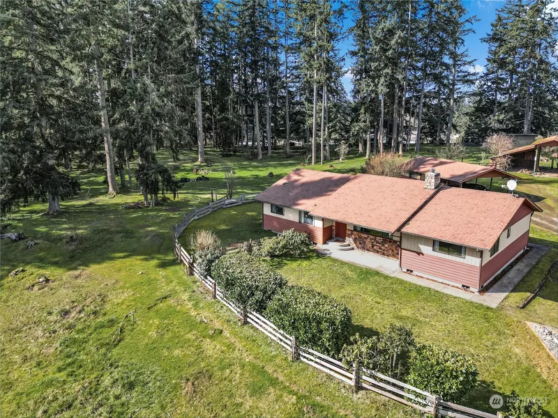 First time this quality home has been on the market. Engineered for quality and efficiency on a corner lot with over 4 acres. Bring the horses, chickens, and the RV. Room for the boat, cars, RV, and more! Future potential with NMSF zoning and Pierce county sewer project on the way. (buyer to verify use fits zoning). Custom oak cabinetry, commercial quality electrical panel, and high quality construction. The custom fireplace has a mantel that was carved from trees on the property. Home is completely insulated all around including the plumbing and the ductwork. Out-buildings for your shop projects and covered parking for a boat, RV and your car! Heavily wooded pastures and a stable for the horse. New paint AND carpet!! Don't wait!