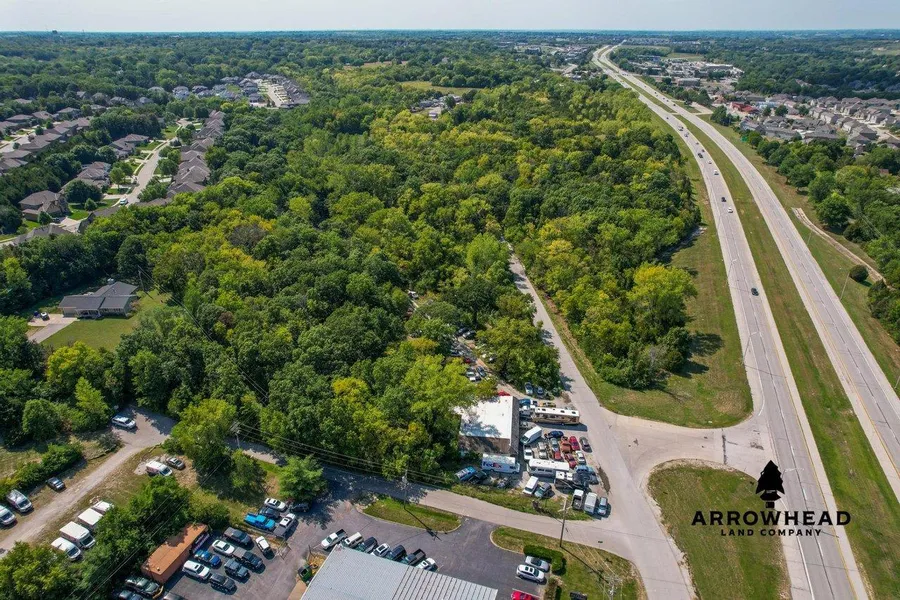 Price reduced! Located along Shawnee Mission Parkway in highly desirable Western Shawnee sits this 6 +/- acres zoned highway commercial and residential with endless potential. Home of the historic and well-known Peavler's Service and Grocery is the 3,042 square foot building that is currently occupied and used as an auto repair shop. This great location between I-435 and K7 HWY paired with excellent visibility from Shawnee Mission Parkway (27,000 cars per day) creates abundant opportunities for commercial, retail, redevelopment, or multi-family. This property features great access with over 600 feet of blacktop road frontage along both Midland Drive and Woodland Drive. This tract sits two doors down from Quick Trip and is in close proximity to a variety of retail, entertainment, dining, offices, and shopping centers. Current owner/tenant may be willing to lease back if new owner desires. In addition to the shop and commercial acreage is a 2,009 square foot home waiting for someone to make it their own. This earth-contact home is tucked up into the hills above the shop and Midland Drive and offers a great investment or single family opportunity. The home is currently occupied but is being sold "as-is". The 3 bed, 2.5 bath home is all one one level and boasts a 1,152 square foot three-car garage that is 2 car lengths deep. Stone pillars out front and a double sided stone fireplace in the living/dining room add ample character and charm. A majority of the residential acreage is made up of mature hardwood timber and a wet weather creek and is frequented by an array of wildlife. The "bones'' of the home are solid and the quiet setting in the timber overlooking the creek below provides plenty of privacy, seclusion, and room to roam. This property is situated in a convenient location close to great schools, shopping, entertainment, and highways. This is a rare opportunity in one of the fastest growing cities in Johnson County. Owner willing to divide. Subject to final survey/plat.