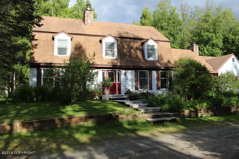 Experience Alaska! 2.5 Acres of beauty & the perfect country home to go with it! Magnificent architecture and impeccable quality will appeal to any buyer. All bedrooms upstairs, gourmet kitchen w/ fireplace & modern accessories w/ contemporary charm. Open rooms & lots of windows create so many possibilities. Gardeners dream & beautiful remodel. Garage plus massive shop storage galore. Circular Dr.