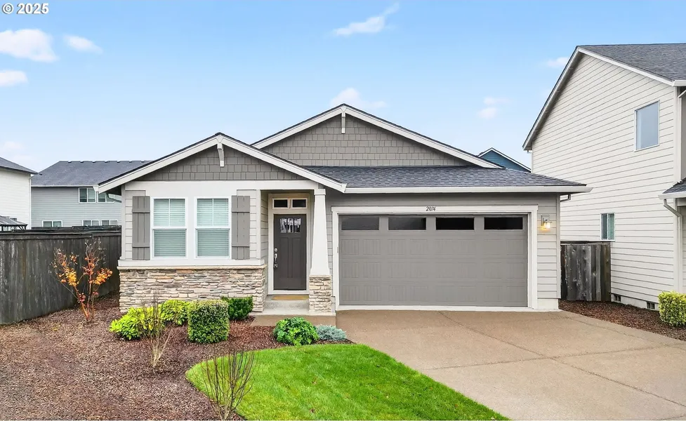 Welcome to this charming single-level Carlton plan home in Laurel Woods. Thoughtfully designed for comfort and convenience, this residence features granite slab kitchen countertops, solid wood cabinetry, a full-height tile backsplash, and a tankless hot water heater. The main living areas offer durable laminate plank flooring, with cozy carpet in the bedrooms for added warmth. Enjoy the natural light and easy indoor-outdoor living with a patio off the living room, plus front and back yard landscaping complete with a sprinkler system. Additional touches include 2" faux wood blinds throughout the home. What the seller loves most is the unbeatable location-just minutes to grocery stores, pharmacies, shopping, and banking. The neighborhood offers well-maintained sidewalks, perfect for daily walks, and a warm, welcoming community where neighbors are friendly and parks are always active with children and families. This home combines modern finishes, single-level convenience, and a walkable, community-oriented setting-truly a wonderful place to call home.