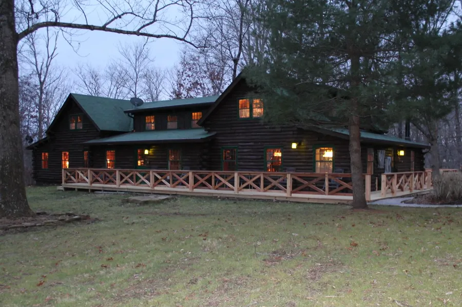This home has been filled with love & laughter. Log Family/Corporate retreat, 6 BRs (2 mstrs) + 2 BR guest cabin w/gas frpl. Remodeled throughout: kitchen cabinets, quartz countertops, appliances, woodstove in huge country kitchen. Sprawling great room with gas fireplace, corner bar. Lots of nooks and crannies for quiet or creative time. Pergola & fishing cabin overlook stocked pond; campfire spots, water feature, decks, walkways. 2 car garage w/workspace under guest cabin. 2nd pond. Paved drive