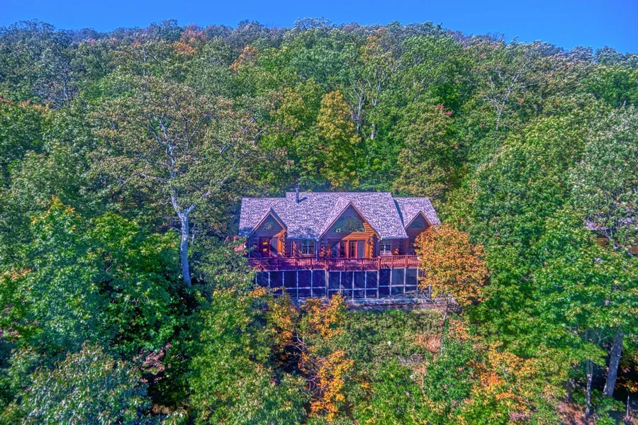 Your private mountaintop retreat awaits with breathtaking views over the treetops and all the way to DC. This oak log home is the epitome of relaxation with a wrap-around deck that invites you to sit back and relish this exquisite outlook and enviable location set amongst the woodlands. As soon as you step inside, soaring cathedral ceilings, dramatic wood beams and an oversized arch window welcome you to explore this grand mountain home. Hardwood floors flow underfoot and there is a stunning stone fireplace that stretches from the floor to the ceiling. Your winter nights are sure to be spent cozying up next to the fireplace after a long day hiking through the local landscape. A gourmet kitchen services the home and is open to the entire home. The beautiful doors open out to the wrap-around balcony. Outside, multi-level decks provide the perfect outlook over this picturesque mountain hideaway. There is also a covered and screened patio with beautiful slate floors ensuring there is a space to relax year-round whether you want to soak up the winter sunshine or relish the start of spring. The expansive first-floor owners suite with access out to the deck. There are two more bedrooms located upstairs along with a handsome office with built-ins. A single garage is located on the lower level along with an unfinished space ready for you to create any extra living area you need. A detached two-story three-car garage features an open workshop that could be a future living or office space, truly endless possibilities. THIS IS A ONE OF A KIND, must see!