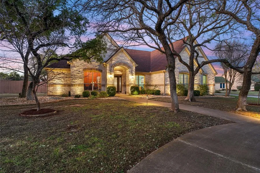Captivating one-story custom home in the heart of Shady Oaks -Just 10 miles from Georgetown's City Center. Pristine residence adorned with custom details throughout & reflects the investment of well over $100k in upgrades. Situated on a 1-acre interior lot, circular driveway, creating a grand entrance. Charm extends beyond the front facade, backing to 19 acres of serene ranch land, ensuring absolute privacy. Grand living in a well laid out 2811 sq feet of living space/3 bedrooms/2.5 bath/private office/ formal dining/entertainers chef kitchen/large family room. Step inside - large custom iron doors & open/inviting foyer area. A seamless MIL open floor plan flows into the main living area, open concept kitchen,dining & living featuring a stone fireplace and spectacular views of the private backyard. A soaring skylight bathes the gourmet kitchen in natural light, showing off the Brazilian Quartzite countertops, stone accent wall & oak custom cabinetry. Custom plantation shutters throughout the entire home and designer hard surface flooring. Bedrooms are carpeted. The in-law plan offers an oversized primary bedroom, tray ceilings, spa bath, designer walk-in shower ensuring a retreat-like experience. A breathtaking outdoor oasis, with stunning in-ground pool with a cascading waterfall. Outdoor kitchen, gazebo, picnic area, raised beds and a delightful playhouse equipped with heat and AC add layers of enjoyment. The covered slate tile back patio, with tongue and groove cedar ceiling, sets the stage for unforgettable outdoor entertaining all within the embrace of a private fenced backyard. Additional features include a three-car garage, providing ample space for both vehicles and storage. ~Enjoy sophisticated rural living complemented by the modern comforts and amenities close-by. Close to shopping, employment, & entertainment. Six miles, to excellent shopping, restaurants, and easy access to major roads such as I35, Toll 130, and Ronald Reagan.