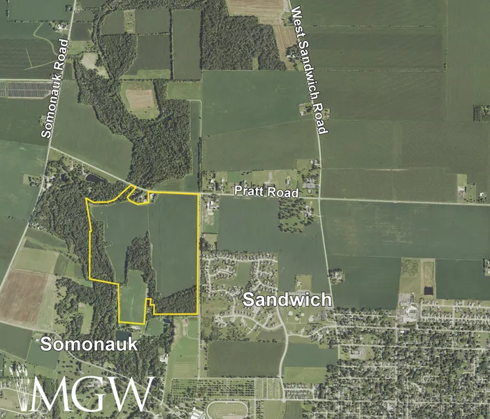 Location: The subject farm is located approximately 43 miles southwest of Chicago O'Hare International Airport, is within the city of Sandwich, and is contiguous to the village of Somonauk. Nearby cities include: Plano (4 1/2 miles east), Hinckley (6 7/8 miles north), and Waterman (8 1/4 miles northwest). There are two outbuildings located at 15798 Pratt Road, Sandwich, IL 60548.