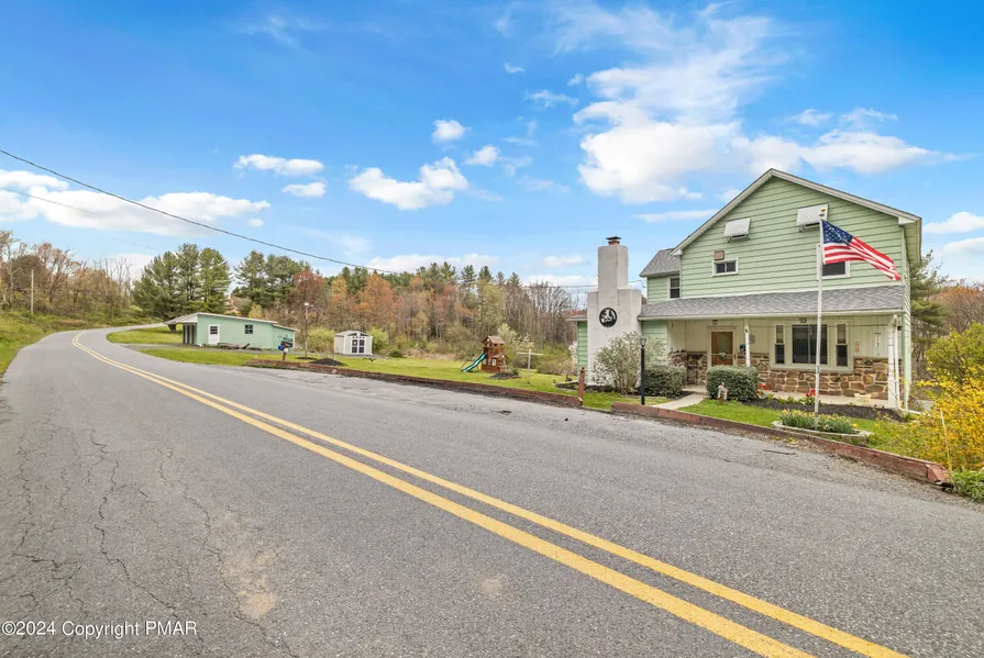 Welcome to the Pohopoco Creek, stream front farmhouse at 209 Floyd Drive in Kunkletown, Pennsylvania! Perfectly positioned on 5.80 acres, this 4 bedroom 2 bath, 4 level residence, with 3 car garage doesn't leave much to the imagination! The fishable stream is accessed from the right rear corner of the parcel, when viewing the home from the road and has native brown trout! The sitting area allows you to take it all in! Inside, the main level of this colonial period floor plan sets the tone with the family room, dining room, eat-in - remodeled - kitchen, large living room with traditional fireplace and ample sized - rear - laundry/storage room. The upper sleeping level houses all 4 bedrooms and the 2nd main bath. There is a 2 sectioned storage attic just above! Finally, the basement has the main area and unique storage nooks and crannies, with walk out access. The, almost 6 acres boarders the state road and highlights the partial - rear - fenced in yard, child swing set, oversized 3 car garage with separate 30X8 heated workshop, utility shed, water shed, and the right rear corner comes to the Pohopoco Creek. For the golf and ski lovers, you are moments to Hideaway Hills Golf Club & Blue Mountain Ski Resort! To top it all off, the heat is oil fired forced air and we have central air conditioning and 2 sources of fresh water, there is an artesian spring fed well!