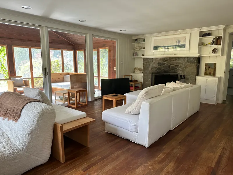 Privacy and Long Mountainside Views on 1.93 picturesque acres. Perched off of a quiet country road, this sweet 2 bedroom home is perfectly positioned to capture the beauty and quietude of the hillside along the Housatonic River. From the garage, stone steps meander down towards the house where a magical setting awaits and the sound of a nearby stream permeates the air. Once inside, one is drawn to the 3 season screened-in porch with commanding views of flora and fauna unique to the New England countryside and evening sunsets. Light filters through the deciduous trees and tall pines creating a serene atmosphere both inside and out. A stone fireplace adds to the cozy ambiance in the combined living/dining room. The kitchen features a farmhouse sink and efficient work space. 2 bedrooms and full bath with clawfoot tub and shower complete the main level. Close to the iconic West Cornwall Covered Bridge and local artisan shops. Short drive to area private schools (Hotchkiss, Salisbury School, Kent and Millbrook). Farm to table restaurants, antiquing and hiking/walking trails abound. 20 minutes to Wassaic Train Station to NYC.
