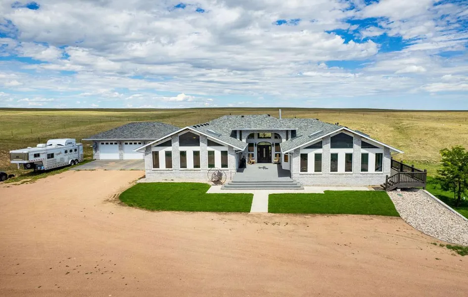 Situated on 35.56 acres with no covenants, this 1996 home consists of 5,947 sq. ft. with 3,851 sq. ft on the main level and a 2,096 sq. ft. basement (1,996 sq. ft finished space). Completely remodeled in 2022, this all-brick home features 4 spacious bedrooms with large closets and 3 baths. The open floor plan includes an over-sized kitchen with a large island, abundant cabinet space, all new GE Caf appliances including double electric ovens and a large 6 burner gas cooktop with a custom hood. The dining room features cathedral ceilings that give way to 14 ft. ceilings in the living room featuring a 14 ft. high custom rock fireplace and a one-of-a-kind custom staircase. With three bedrooms on the main floor and 2 baths, a fitness room, a sizeable sunroom and a large laundry room/mud room attached to the oversized 3 car garage, this home offers main floor living with room to entertain. The walk-out basement includes a generous family room, a large bedroom with an oversized walk-in closet, a full bathroom with double vanities, an office, a 108x13 walk-in safe and a 126x114 storage room, complete with an outside entrance. Finishing touches in the home include granite countertops throughout, all new bathroom and kitchen fixtures, new and refinished hardwood floors, tile, and carpet. The home is equipped with a 400-amp electric service and Geo-thermal heating and air conditioning which makes for year-round efficient climate control. The exterior of the house is fully bricked with stucco accents for a maintenance free exterior. Fully landscaped, the property has a sprinkler system and an amazing front porch for enjoying the Wyoming summer nights. This property is located adjacent to the TT&T Equestrian Arena which is also listed with Clark & Associates Land Brokers, LLC and could be purchased in conjunction. The acreage may be subdivided upon final approval from Laramie County. This property is Broker owned.