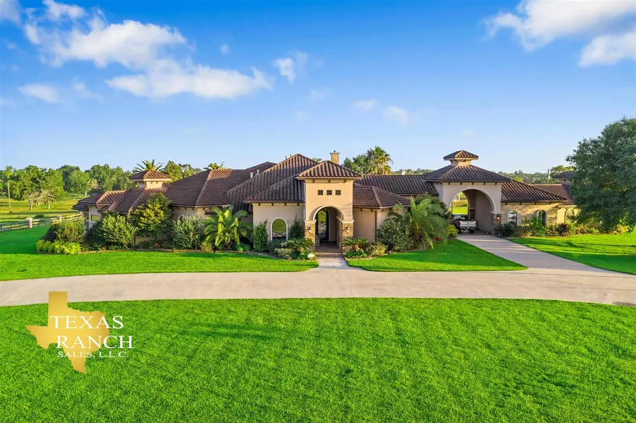 The centerpiece of the Fulshear Ranch is the stunning 6,689 custom Tuscan home which features four bedrooms and four full bathrooms. The single-story home also boasts a gourmet kitchen, two large living areas, a huge covered back porch, and custom treatments throughout. The attached four-car garage has been transformed into a massive game room. Behind the house is a resort-style swimming pool and outdoor patio area. Next to the house is a half-acre waterpark with ziplines, a 5,000 square foot palapa bar and sandy beach offering endless fun, relaxation and entertaining opportunities.