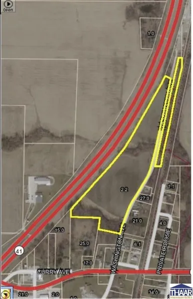 Prime commercial real estate with approximately 2000 FEET of HIGHWAY 41 frontage located between Casey's Gas Station & the Shelburn grain elevator with a Highway 41 ingress/egress access point, and/or you could access the property from Washington Street that T's into Highway 48 at the Shelburn American Legion. There is a strip of this property on the east side of Washington St that runs along the rail road, so if a business requires rail access, this could be a fantastic location. All city utilities can be ran to this property.