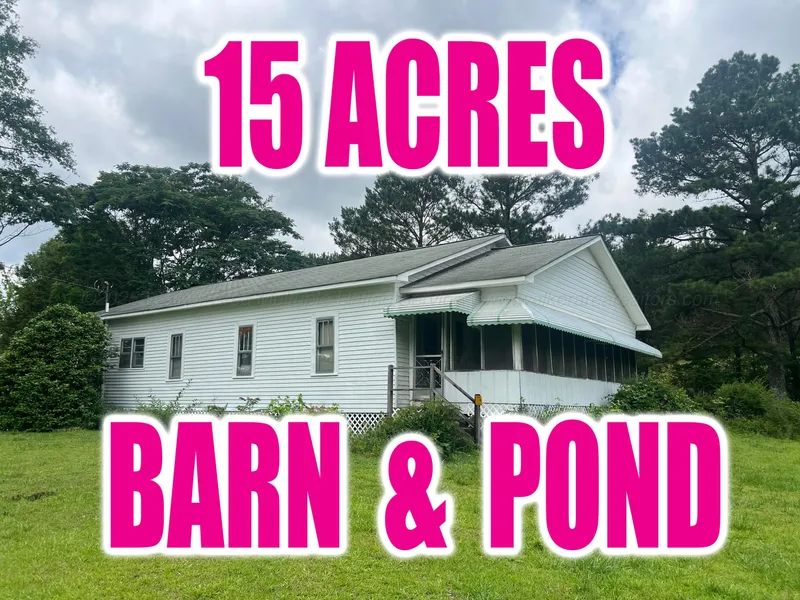 This 2 bedroom, 1932 sq. ft. single-story home is situated on 15 fantastic acres of farm land. Large barn, pond, and large fields are ideal for your family. The large fields and barn is ideal for your horses, cows, and all your livestock.Less than 3 minutes to Smith Lake and Trident Marina. Check out the 3D Virtual Tour.