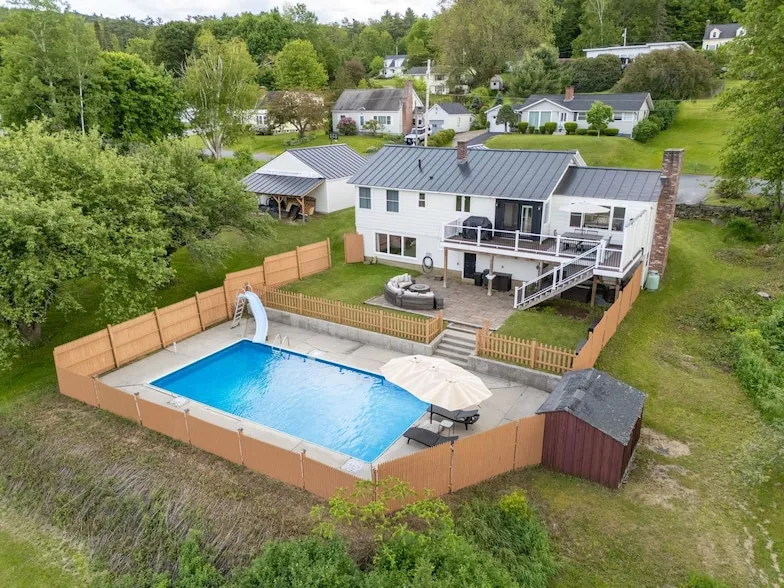 Welcome to your dream home! Nestled on a sprawling, oversized lot within one of the city's most desirable neighborhoods, this property offers the perfect blend of modern luxury and convenience. Circa 1965, this ranch-style home has been completely transformed with extensive upgrades, creating a warm and inviting atmosphere. The modern kitchen boasts sleek new cabinets, stunning quartz countertops and a charming breakfast nook with direct access to the private deck. Imagine sipping your morning coffee while overlooking your backyard oasis. The spacious living room and well-appointed dining room, complete with a fireplace, are sure to impress. Three perfectly sized bedrooms offer ample space for relaxation, while the two updated bathrooms feature stylish finishes and modern fixtures. Hardwood floors in the bedrooms add a touch of elegance, while updated flooring and fresh paint throughout the home create a bright and airy ambiance. The walk-out basement leads to a new back patio and a large fenced-in yard, complete with an inground pool & nearly 1.5 acres of land. If the weather isn't cooperating, the basement is the game changer featuring a game room, home theater & bar area, perfect for entertaining guests or relaxing with family. This home is ready for you to make memories and move in, TODAY! Minutes from I-91, Lebanon, Dartmouth, and the Upper Valley. Easy access to Keene, and year-round recreation at Okemo, Killington, and Mount/Lake Sunapee. Delayed showings until 6-17-25
