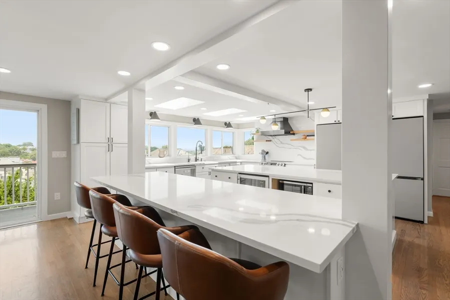 Beautifully updated 5-bed, 3-bath home with stunning panoramic views - the last house on a dead-end street! Immediately feel the spaciousness of the open-concept layout, seamlessly connecting the living room, dining, and show-stopping kitchen. The kitchen is a true centerpiece, featuring quartz countertops, generous center island, and sleek breakfast bar - ideal for entertaining. The dining room opens to a raised deck through double sliding glass doors, where sweeping views take center stage. The first floor includes two bedrooms and a full bath. Upstairs offers a massive primary suite with a full bath and private sunroom retreat. Two spacious bedrooms and another full bath complete the upper level. A large finished basement provides flexible space with access to a patio and a large storage area. Located right on the Boston/Newton line in Oak Square with access to BC, Brighton Center, golf, Boston Landing, Charles River, and the Mass Pike within 1-2 miles.