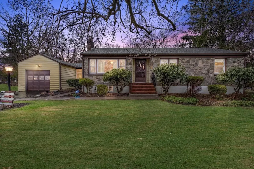Welcome home! This charming Ranch-style home offers the perfect blend of comfort and convenience. Featuring an open floor plan, this residence boasts 3 spacious bedrooms and 2 full baths. The interior showcases beautiful hardwood floors throughout, large windows throughout the living/dining rooms offers a lot of natural sunlight. Complemented by a kitchen with stainless steel appliances. A large unfinished basement provides ample storage or the potential for future expansion. Nestled on a lush, wooded 1.2-acre lot, the property offers a serene retreat with a private patio area, perfect for outdoor relaxation. Conveniently located close to the highway, this home provides easy access to nearby amenities while maintaining a peaceful, natural setting. You have dreamed it, now you can live it. Don't miss this one.