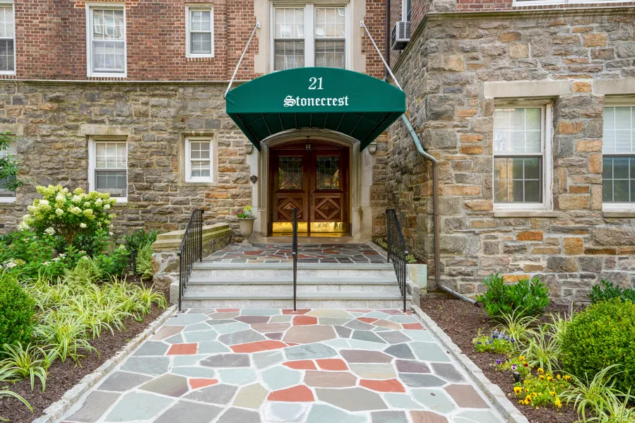 AO - show for backup Spacious, gracious 2 bedroom 2 bath corner apartment in desirable Stonecrest, a pre war luxury doorman building, in premier location. Features include a covered terrace with great views, updated dine-in kitchen, beautiful new bath, elegant foyer, gorgeous bright large living room, high ceilings and hardwood/parquet floors. Amazing location - just minutes to train station, restaurants, Elementary School, parks and Village.