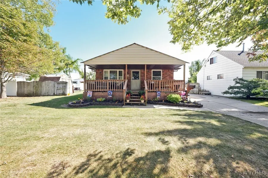 Welcome to this charming 3-bedroom, 1.5-bath ranch located on a quiet neighborhood street in the Maryvale School District. Enjoy evenings on the covered composite front patio, a perfect spot to relax and unwind. Step inside to a spacious living room featuring a beautiful brick fireplace. The eat-in kitchen is ready for your personal touch and updates. Three generously sized bedrooms and a full bath are located toward the rear of the home. The basement offers ample space for storage and entertaining, complete with a half bath, dedicated workspace, and a large laundry room with its own sink. Outside, the side entry leads to a wide driveway and a 2.5-car garage-ideal for vehicles, a workshop, or additional storage. The private, fenced backyard provides endless opportunities for customization.