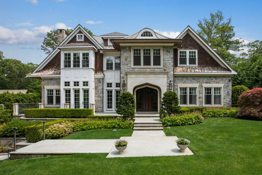 An additional 5,500 SF in the fully finished basement includes a conditioned three-car garage, a state-of-the-art home theater with full surround sound, a gym, a spacious recreation room, an indoor half-basketball court and more. The home is outfitted with top-of-the-line amenities including a Control4 smart home system, Lutron centralized lighting, and an impressive security system with 20+ surveillance cameras. Radiant heated tile flooring extends across all three levels for year-round comfort. Rich natural materials define the exterior, featuring Adirondack natural stone with shingle accents, a slate roof, and copper gutters.