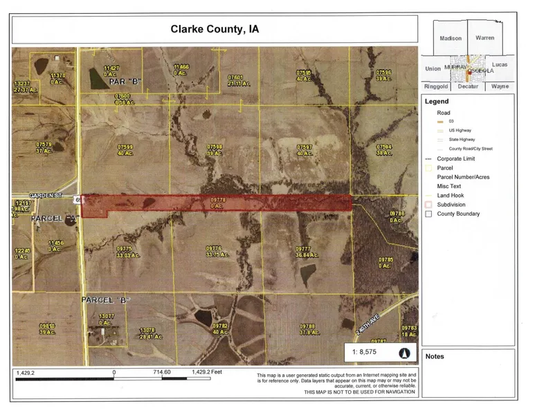 Research Parcel InformationUS Hwy. 34 East to US Hwy 69. Head South on Hwy 69 approximately 4.5 miles to Garden Street. House and acreage on the left just past the second Garden Street sign.