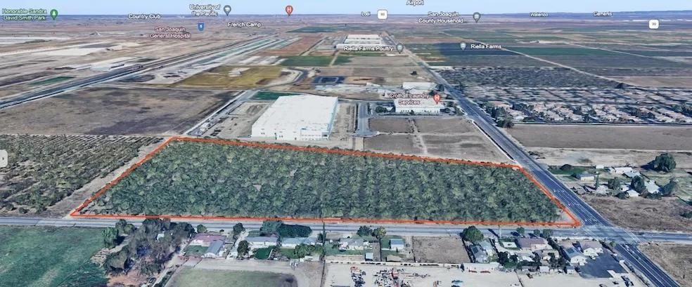 Busy Corner on the Airport Corridor. Close to Freeways and Commercial Planning. Est 21 Acre Parcel! Master Plan Zoned with Underlying General Commercial Land Use Designation. Currently a producing Orchard! Fully Annexed to the city!!!!!