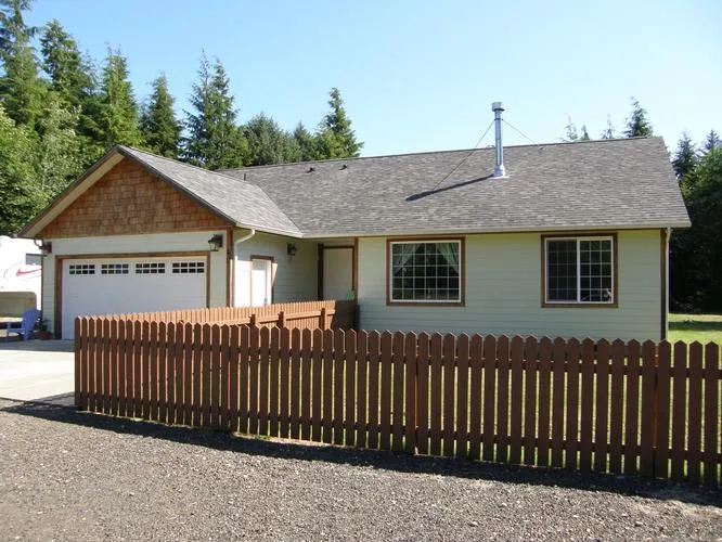 This 1,350 +/- s.f. home is on a 21 +/- acre site along the Humptulips River in Copalis Crossing, about 20 minutes northwest of Hoquiam. The property has low to high-bank frontage, providing access to fishing and a great swimming hole. The home, built in 2008, is a single story, open floor plan, with tall vaulted ceilings. The home has 3 bedrooms and 1.75 bathrooms. The master bedroom has access to an outdoor patio and the kitchen has an informal dining area and breakfast bar. Attached two car garage.