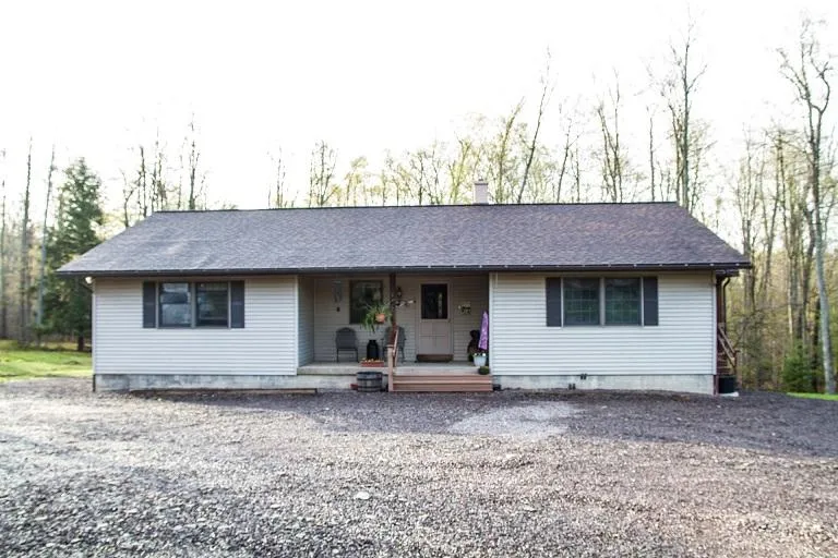 If seclusion is what you are looking for, this is the property for you! Owner-built 3-bedroom custom ranch with many extras is suited to full-time or seasonal use. Features include living space all on one level, wood stoves in living room and basement large deck with hot tub, eat-in kitchen with walk-out door, large office, full basement with laundry, worktable and walk-out door, 32 x 24 barn/garage for car, toys and equipment plus additional insulated storage shed. 21.4 wooded acres adjoins State Game Lands 66 and is close to Ricketts Glen and Worlds End State Parks.