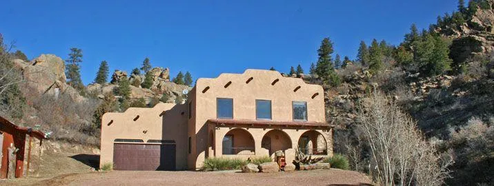 This lovely Spanish style 2-story stucco home sits on a basement and is virtually maintenance free. It is very quiet and secluded with 21.5 acres that borders BLM on 2 sides. Spectacular rock outcroppings surround this home, mingled with aspens and pine trees. A great place for your horses to be. In summer, a seasonal spring fills a pond that sits by a quaint 1800s guest cabin. The cabin has its own LP refrigerator, cook stove, pot belly stove, bunk beds, and an outhouse with a shower. The main house, with its open floor plan, is tastefully designed. Recent upgrades include extending the existing loft and finishing the basement with aspen paneling and built-in bookcases with adjustable shelves. When you add in the dog kennel with heated night area, the workshop, and the additional large storage barn, this property won't last long!